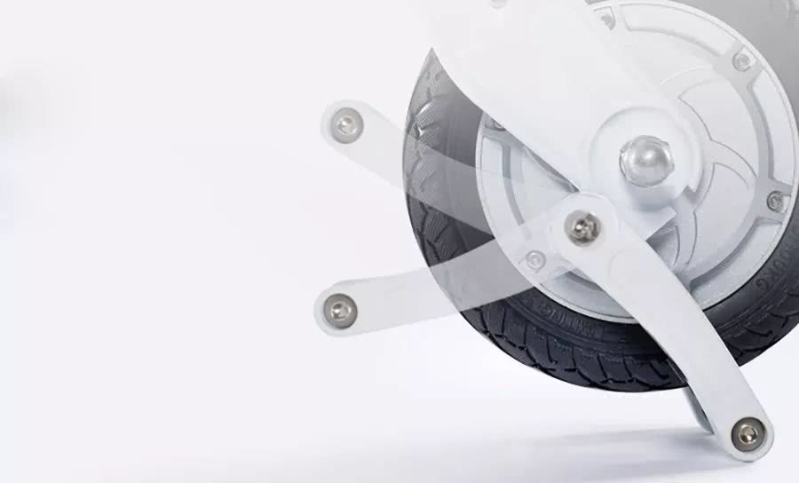 并通过多达10处的折叠结构,与车身两个空心圆的设计,让每一处折叠结构稳定不会滑动的同时,更为收纳车轮提供了足够的空间。