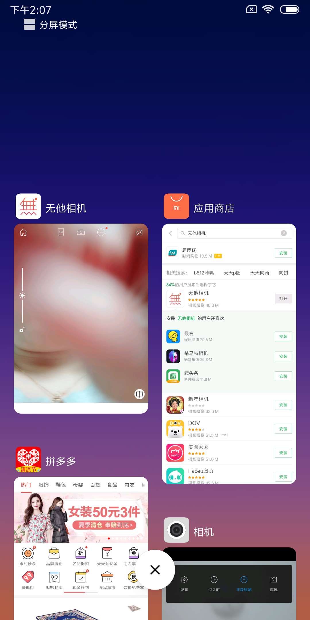 MIUI 10 的最近任务界面采取纵向瀑布流设计,通过全面屏手势进入最近任务界面, 不需要改变手势方向,继续上下滑动也可以快速浏览最近的任务,可以提升一定的效率。