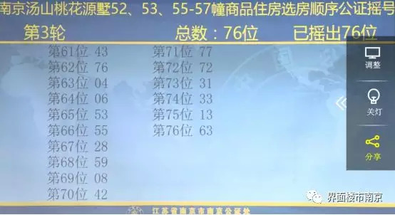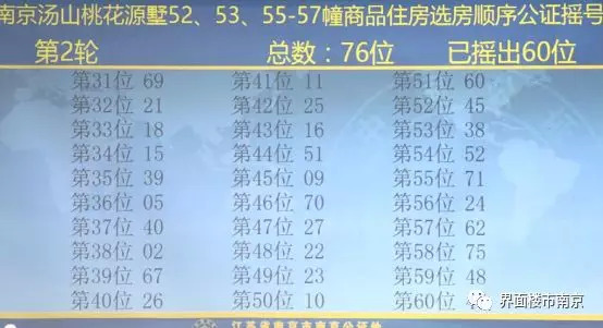 今天上午9点30分,南京汤山桃花源墅公证摇号。共有76组买房人参与摇号(剔除1组不可摇号),中签率39.5%。南京汤山桃花源墅已经领取30套精装合院销许,分别为52、53、55、56、57号楼,面积321.64-467.84㎡,销许均价20158.6-32072.3元/㎡,拟交付时间2020年6月30日,精装交付。