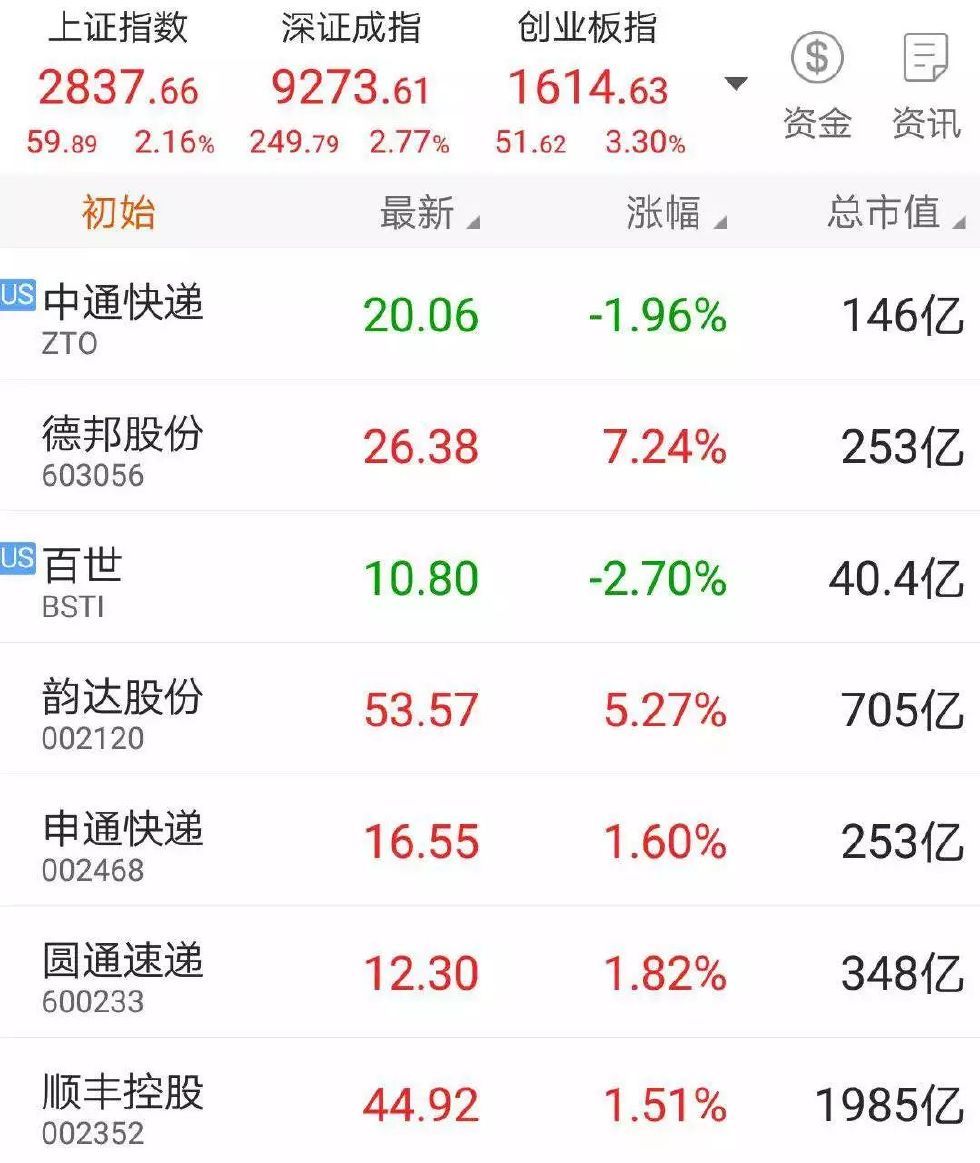 随后,快递股全线向上,龙头顺丰控股现升1.6%,报44.96元;申通快递升2%,圆通快递升1.5%。