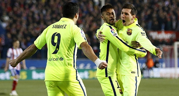北京时间1月29日04:00(西班牙当地时间28日21:00),2014/15赛季西班牙国王杯1/4决赛次回合在马德里卡尔德隆球场展开,尽管托雷斯和劳尔·加西亚进球令马竞两度领先,但巴萨客场凭借内马尔的梅开二度以及马竞后卫米兰达的乌龙球,最终3比2力克9人马竞。在以总比分4比2连续五年晋级国王杯半决赛的同时,巴萨在不到20天的时间里完成了“三杀”马竞的壮举。