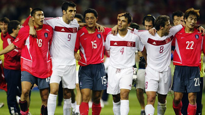可以说,幸运女神在这届首次于亚洲举行的世界杯上眷顾了“太极战士”。古斯·希丁克带领的韩国队连续凭借争议判罚在淘汰赛前两轮先后淘汰了意大利和西班牙,最终在半决赛中输给了德国队。与此同时,土耳其队作为那年夏天的最大黑马,一路杀到了最后的四强,在半决赛中0-1惜败给巴西队。