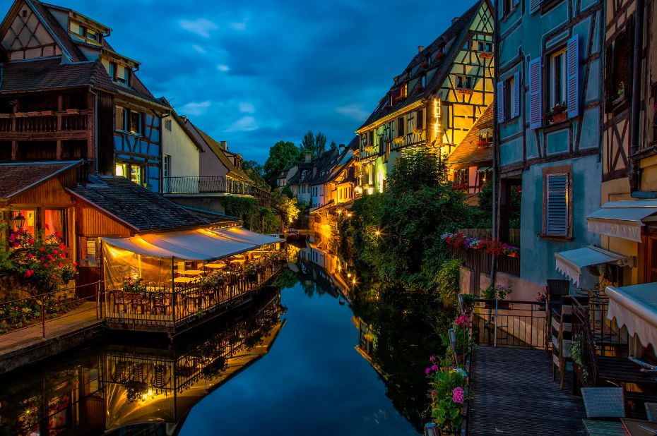 老城区不大,闲逛的方式可以选择步行,也可以搭乘小船。坐船游览大概半小时,沿岸用鲜花装点的小店,总有无所事事的当地居民悠闲地坐着聊天。夏日的法国白昼很长,等了许久终于夜色降临,眼前出现了童话里才有的画面。