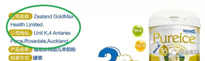 胡说有理在某大型电商平台的海外购平台上就发现了这款高培冰纯羊奶粉,其生产厂址和企业名称如下图,胡说有理在国家认监委公布通过注册的新西兰婴幼儿奶粉工厂名单中,并未找到与之相对应的。