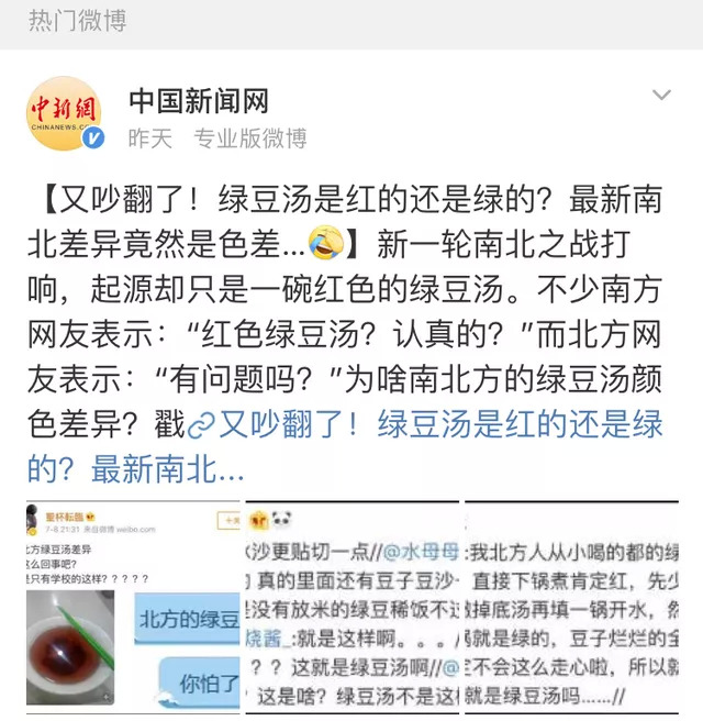 南方的小伙伴说:绿豆汤当然是绿的啊,红的是什么鬼!