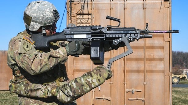 据这个巴奇尔所说,他们呢,现在已经对“第三臂”进行了大量测试,测试主要针对了M249和M240B两款机枪,其中的M249我们已经提过了,而M2408呢,则要有27磅,合24斤多。有了“第三臂”,大兵们可以非常省劲!