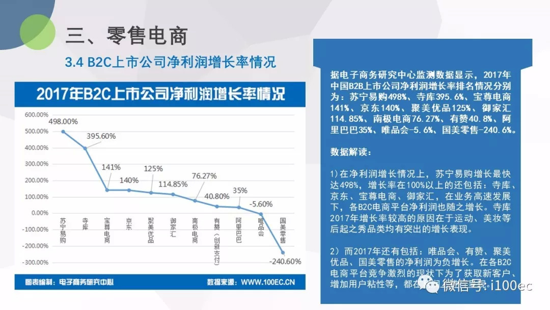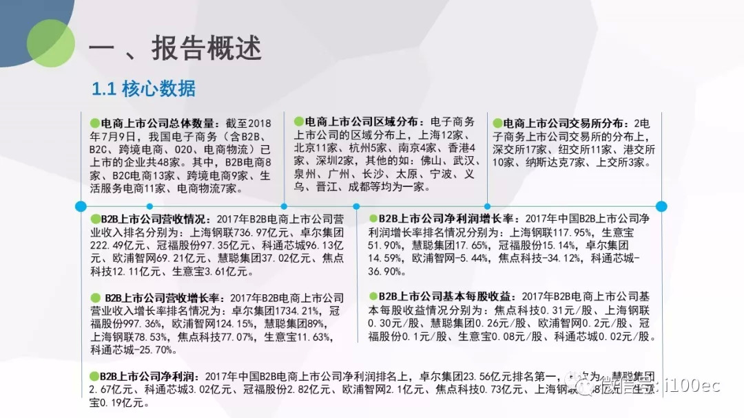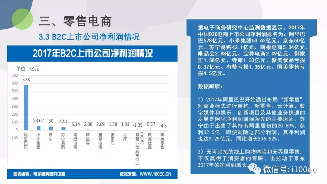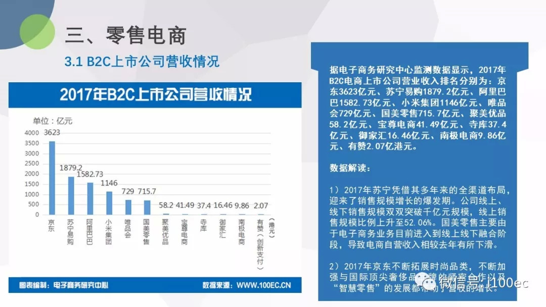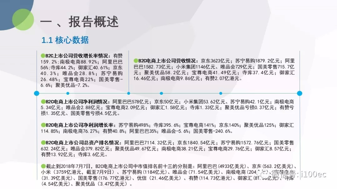 以下为电子商务研究中心自媒体(微信ID:i100EC)为您带来的《2017-2018年度中国电商上市公司数据报告》简版PPT: