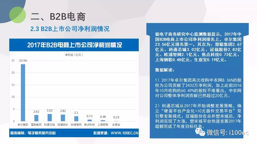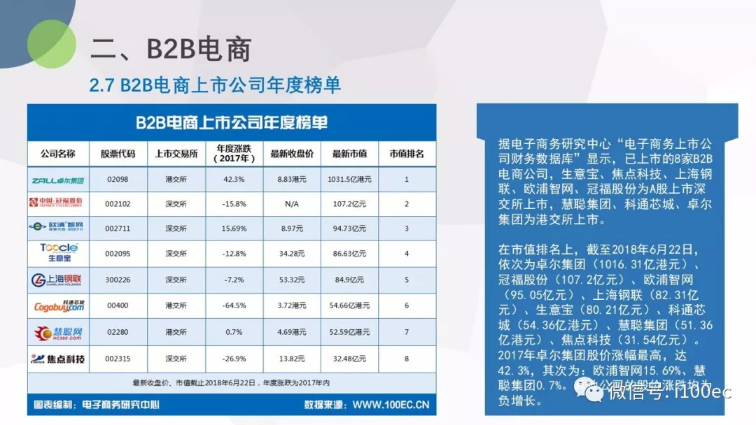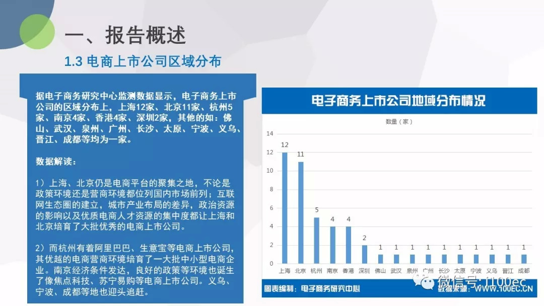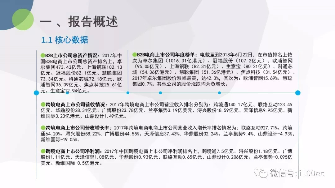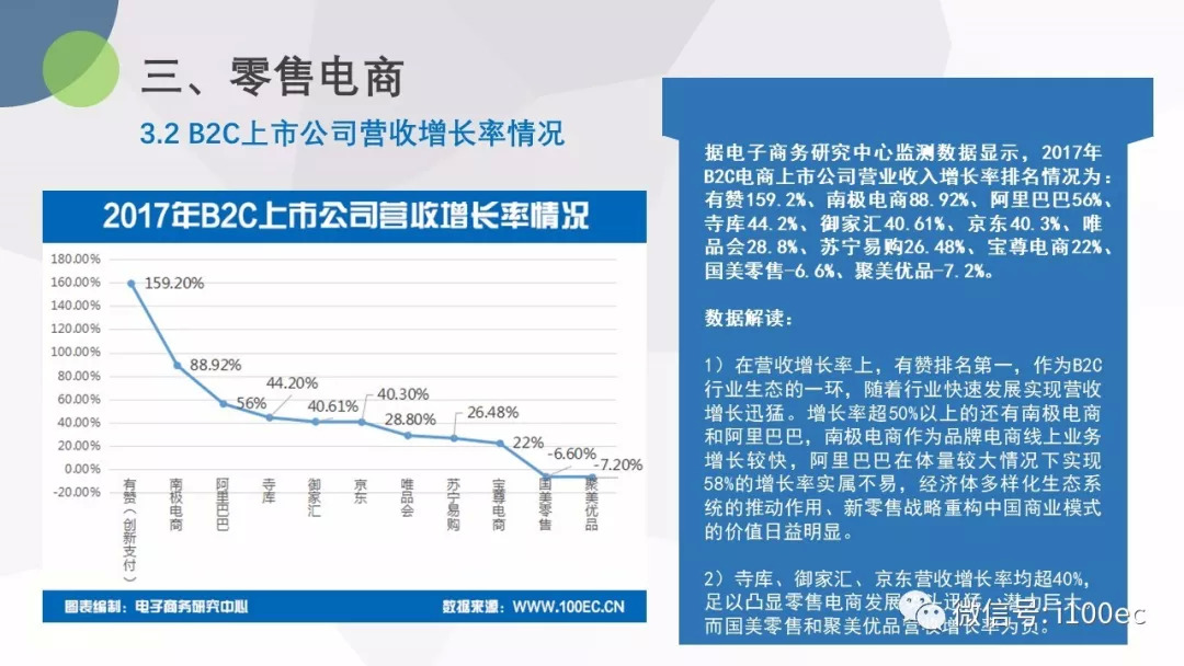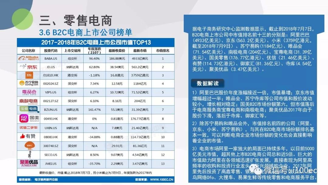 以下为电子商务研究中心自媒体(微信ID:i100EC)为您带来的《2017-2018年度中国电商上市公司数据报告》简版PPT:
