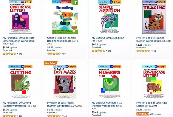 ▲部分Kumon Publishing出版的童书与教辅 图片来自亚马逊