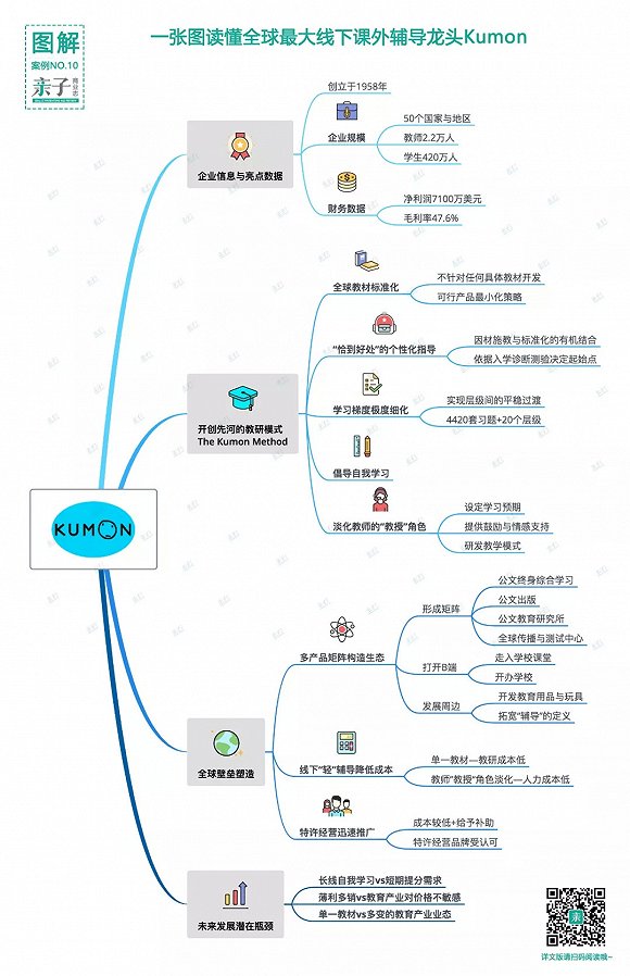 如今,Kumon已经成为全球最大的课后辅导机构,并已成功设立Kumon北美、Kumon中国、Kumon南美、Kumon亚洲与大洋洲及Kumon欧洲与非洲五个地区总部,共触达全球K12学生超过420万人。
