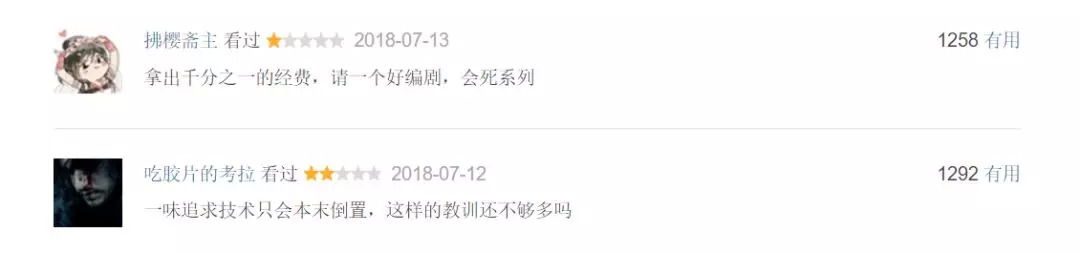 这样看下来,片方虽然在特效上下了不少功夫,但7.5亿的成本是否真的没有水分,确实值得存疑。