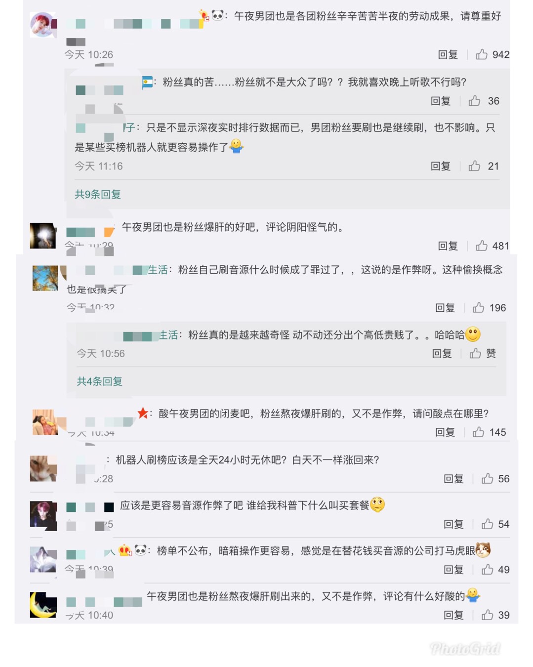 对于此次暂停凌晨实时榜单运行,有不少网友表示音源作弊的根源并非只能在凌晨进行,而取消凌晨实时榜单可谓治标不治本;而对于“午夜男团”的粉丝来说,此举也颇有“歧视”含义,在韩国由于不少偶像男团多在凌晨发布音源,因此该时段是粉丝屠榜的最佳时段,不少“午夜男团”的粉丝表示,自己在半夜刷榜,也是真金白银地花钱,这样取消并没有实质性的意义。另外,不少粉丝认为,暂停凌晨实时榜单,更难分辨音源作弊现象。