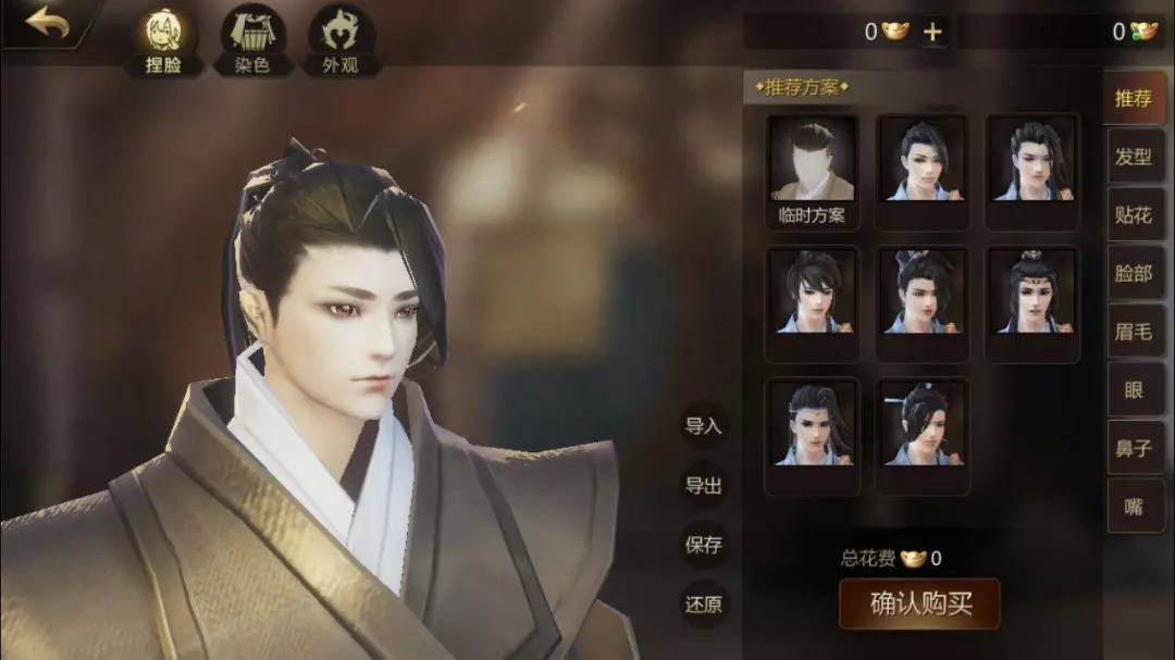 本作的捏脸系统从发型、贴花到脸部、眉毛等共分7大类,每个类目下还有少则5种,多则20种的选项,堪称复杂。为了照顾懒癌玩家,官方还设置了推荐方案,一键可选。
