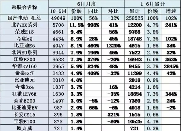 在最新政策 “续航越高补贴越多”的刺激下,A00级纯电动车在6月的整体销量迅速败下阵来,前十的位置只剩下奇瑞EQ、江铃EV200以及华泰EV160。补贴缩水之后,微型电动车面临着两条路:续航不足150公里的,由于不再享受补贴最后会被消费者淘汰,而仅有不足200公里续航的车型销量严重下滑。由于新政策下每增加50公里续航可以享受1万元的补贴差额,拥有200公里续航的奇瑞EQ在6月份有了明显的销量上涨。