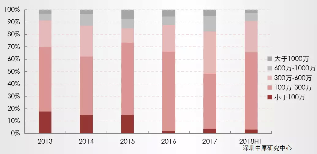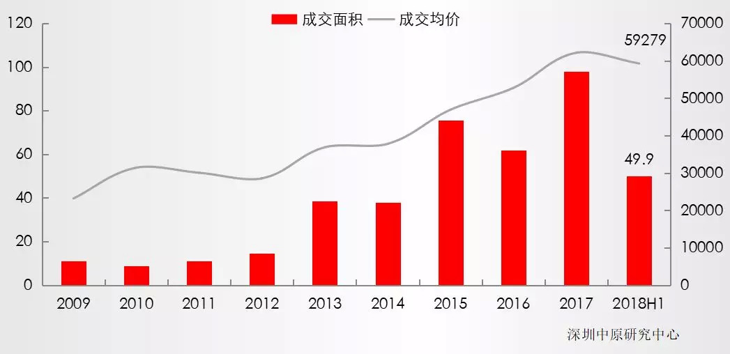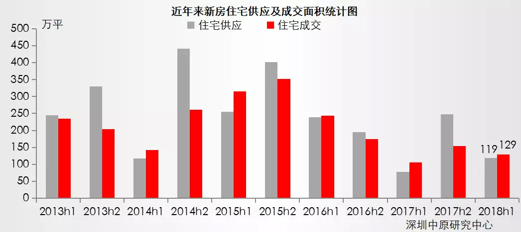 上半年深圳新增批售住宅面积共计119万平,而一手住宅成交了129万平,供应量远远赶不上市场的消化速度。中原数据显示,截至2018年6月底,新房住宅存量266.3万平,根据过去半年成交量计算,去化仅需12.4个月。