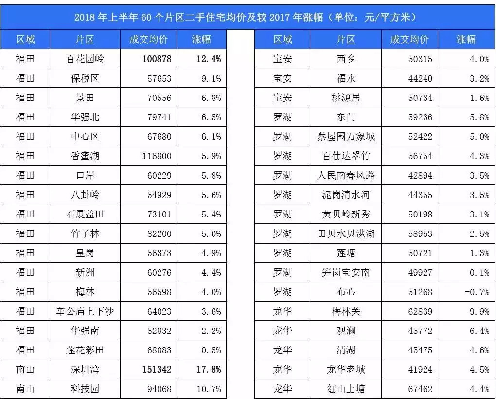 2、上半年深圳二手房均价 57297 元/平,同比上涨 5.4%。