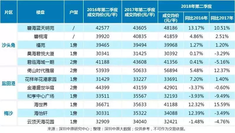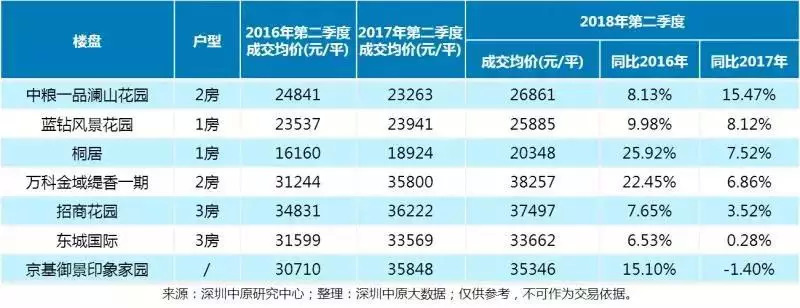 说了这么多,那么经历了“10.4”新政、“三价合一”的深圳二手楼市,它们的具体价格变化究竟如何呢?(注:因成交数据较多,以下仅展示部分热门楼盘。)