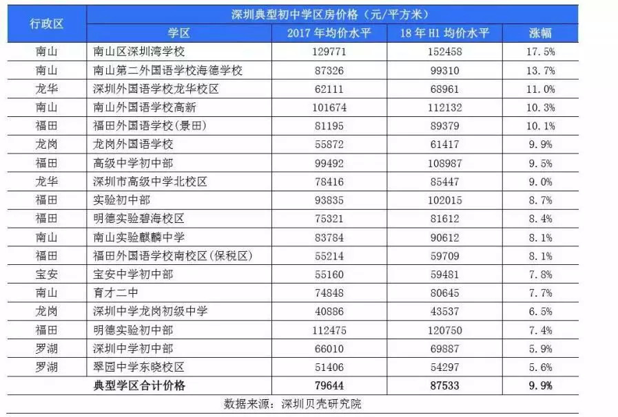 市场上,学区房永远是硬通货。据深圳贝壳研究院研究数据,深圳各区典型学区房涨幅全部超过5%,总体平均涨幅接近10%。