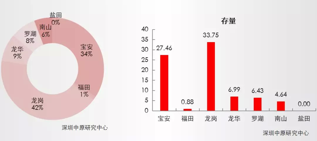 ② 公寓供应量大幅下跌,存量集中在宝安、龙岗两区: