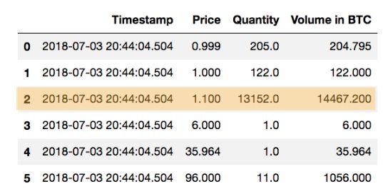 当我们开始从 /api/v1/aggTrades 中提取数据时,事情变得有趣起来。