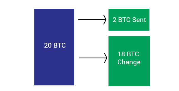 比如你想从商店买一块钱的棒棒糖,你打开你的钱包,发现里面只有一张 20 元面值的人民币。你能支付的最小金额是多少呢?当然不是 1 块钱,你不能把这张 20 元钱的纸币撕下 20 分之 1 再交给营业员。你必须把这张 20 元面值的人民币全部交给收银员,然后因为你只需要支付 1 元钱,收银员会找给你 19 元。