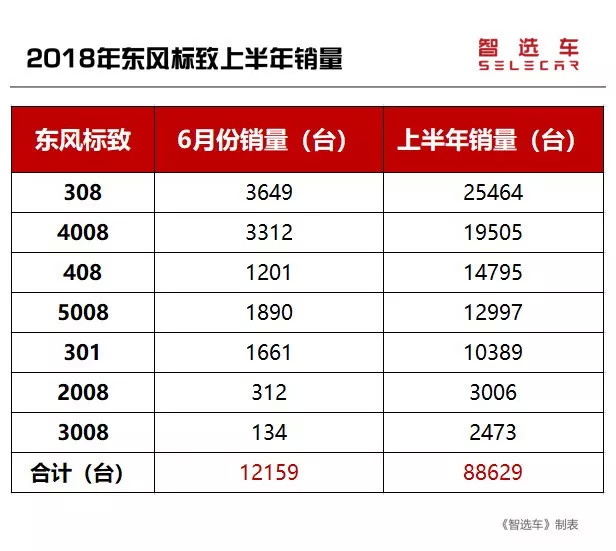 通过表格可以看出,东风标致的当红紧凑级家轿308在6月份仅卖出了3649台,略显疲软。标致408由于临近改款,所以销量表现不佳。SUV车型4008和5008继续不温不火,2008和3008销量堪忧。