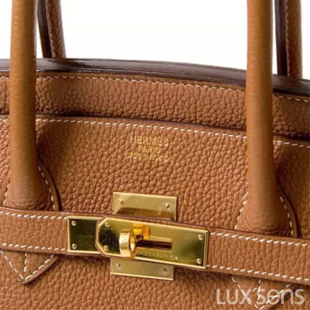 Hermes 包包的走线也是同样,一针一线都是由工匠们缝制而成,它并没有机器做的那么整齐,所以这也可以作为鉴别 Hermes Birkin 真假的理由!另外 Hermes 会有固定的工艺,比如金色的铂金包都会使用白色的衬线和棕色的粘胶来制作。