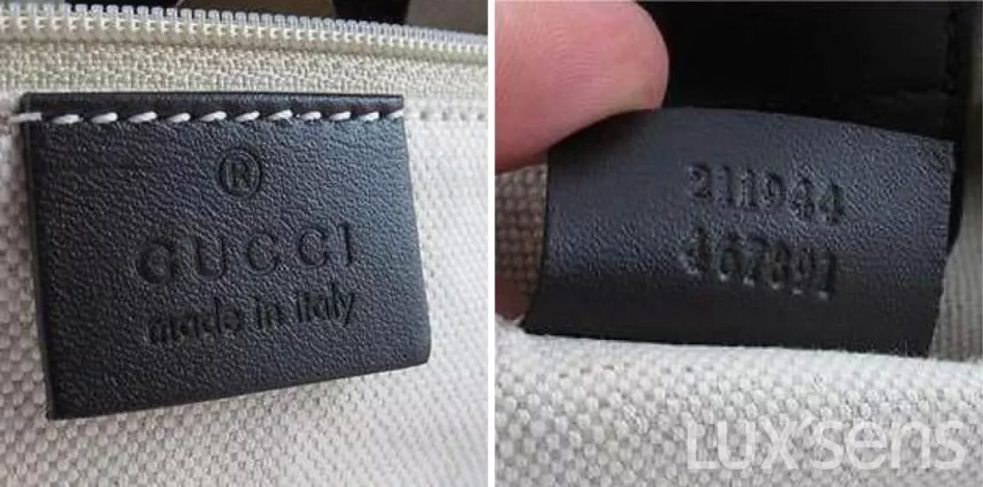 每个大牌包包都会有一张自己的“身份证”,大家也可以通过这张身份证来辨别它的品质。Gucci 包包也不例外,“身份证”上一般会有自己品牌的英文名,另外下方的一排字母则是它的出生地。大家在买包时候把这一点作为鉴别的一部分也是可以的,而 Gucci 包的标签背面就是这个包对应且唯一的编号。