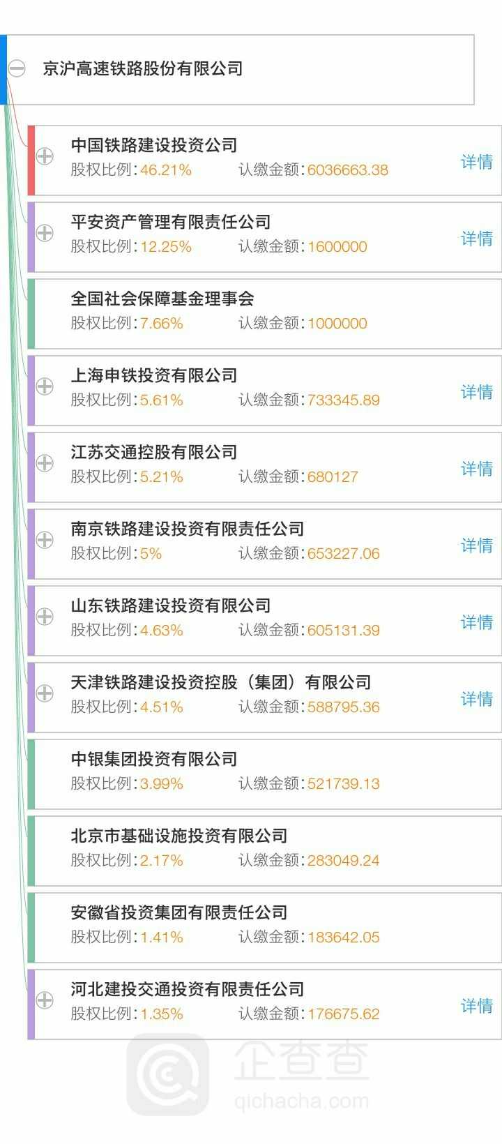 企查查据公开数据统计,京沪高铁股份有限公司目前股权结构如下: