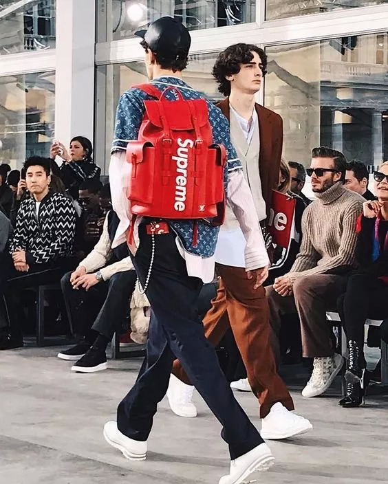 而谁又能想到,曾经对簿公堂,关系如履薄冰的两个品牌会在不久之后合作联名,搞了一件震惊整个时尚界的事。LV×Supreme的单品一经发售就被抢空,各种单品深受时尚界大咖和明星们追捧。