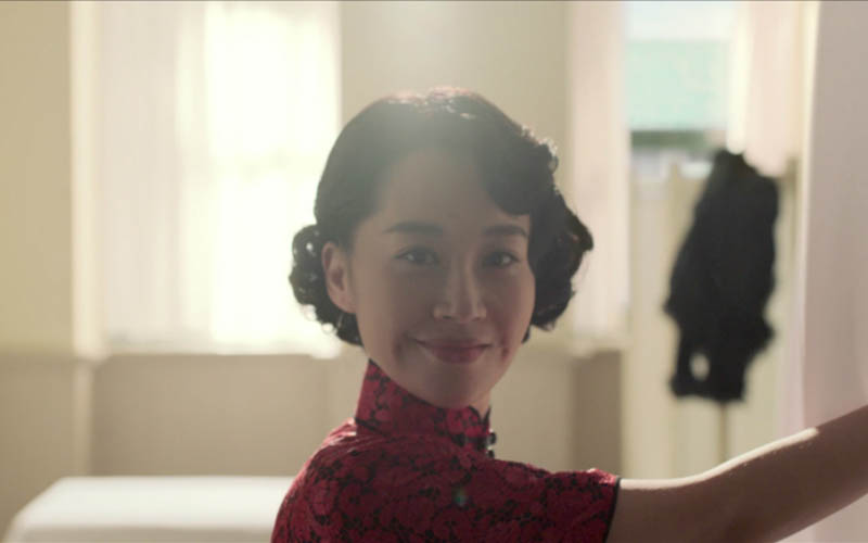 许晴饰演的“北平之花”唐凤仪,她的出场是要小亨大夫(彭于晏饰)为她打“不老针”。这一段声色兼备,红色的旗袍,精致的头发,梨涡浅笑,说话声调时高时低,连呼吸都是嗲嗲的。