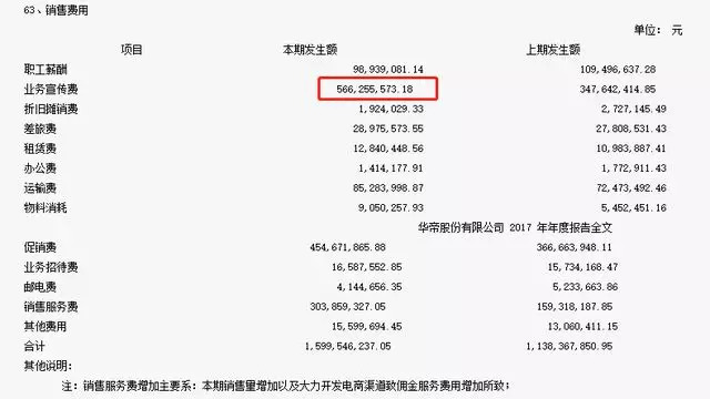 相比2017年华帝的营销费用而言,这个7900万不算高——根据华帝股份 2017 年年报,华帝全年业务宣传费支出约为 5.66 亿元。
