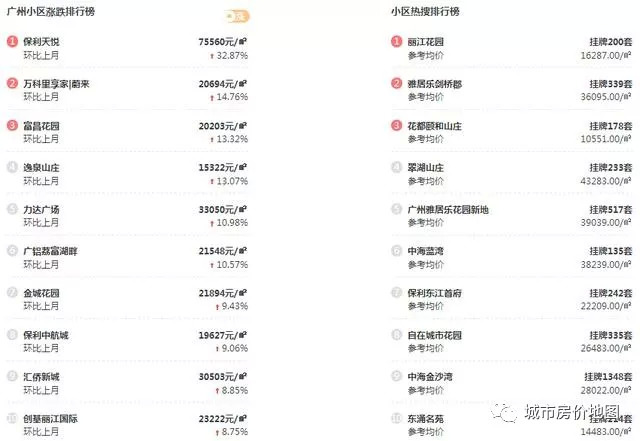 7月广州小区二手房挂牌均价涨跌排行榜及热搜小区榜
