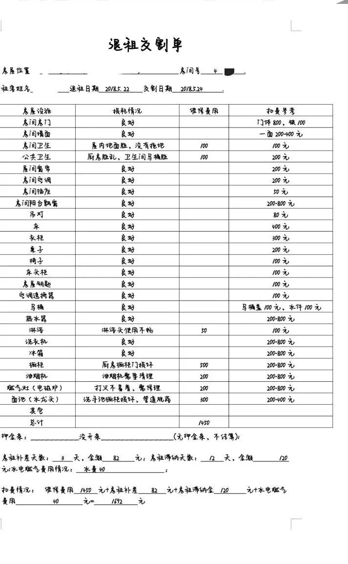 房间中其余的租客对于这一交割单心存忌虑,担忧自己将来退房时是不是也会遇到同样的情况。这是一处某品牌公寓下的合租公寓,一套房子被改造成五间卧室,一间厨房,一间洗手间。而这仅是这一位租客退租之时,并非所有的租客全部退出这套房子。那么剩下的租客自然会担心,同样的款项是否也会在自己的押金中被扣除。