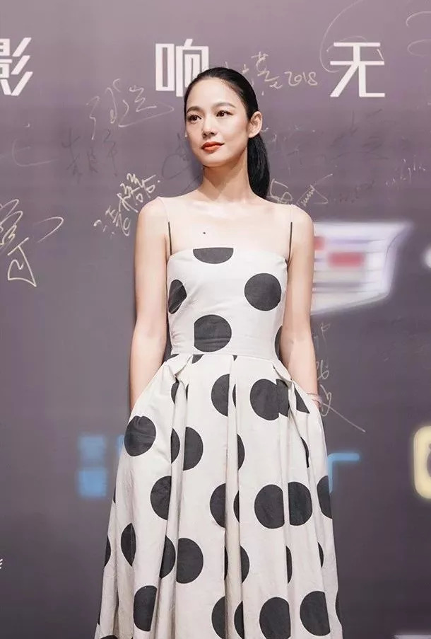 前不久她和电影主创们一同出席活动现场,身着一袭剪裁利落的波点长裙,头发拢到脑后,光洁的天鹅颈勾出柔和的线条;