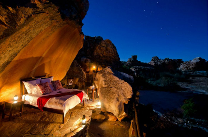 与山洞全景房相似的一种体验是野奢帐篷,这种将自然风光与奢华服务二合为一的体验,是近年来风靡世界的一种对绿色环保理念的表达。受欧洲殖民影响的南非,在消费理念上也更趋于现代模式,“平价奢华型”的目的地让野奢变的更受欢迎。地域环境上的“野”与物质上的“奢”,通过环保材料的使用,与周围极致的美景完美的融为一体,真正做到了返璞归真的境界。