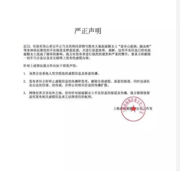 赵丽颖患心脏病、脑血栓?