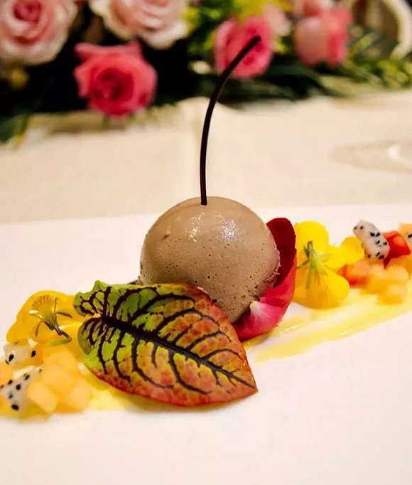 原汁松茸冰淇淋,将新鲜松茸在开水中煮三分钟后冲冷,放少量矿泉水,橄榄油,牛奶一起入搅拌机中打成细腻的松茸汁,浇至在做好的冰淇淋上,最大程度上保留松茸本身的鲜美。用舌尖轻舔,仿佛有飘飘欲仙之感~