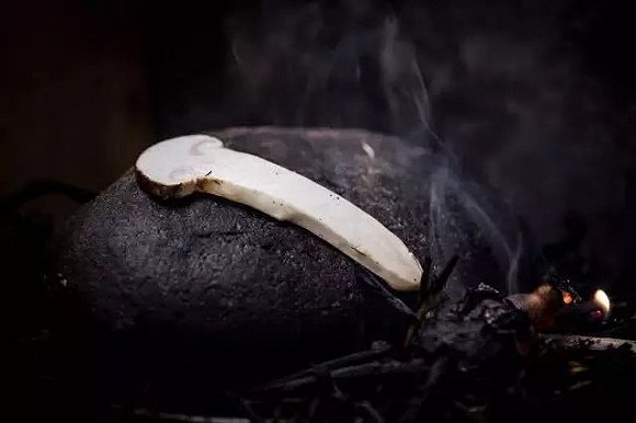 另一种独特吃法是将松茸放碳火中炙烤,热力将松茸逼出一种矿物质的酽香,浓烈袭人。放入口中,带给食客更加珍贵的舌尖体验。这令远离自然的人,将此物视若珍宝。