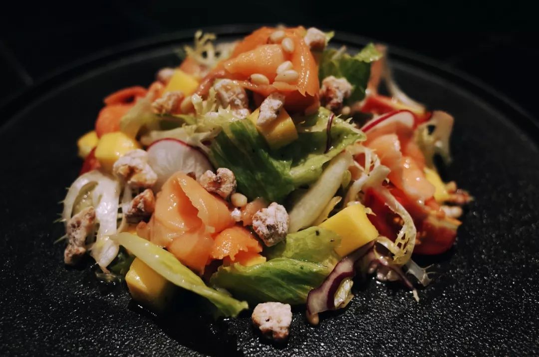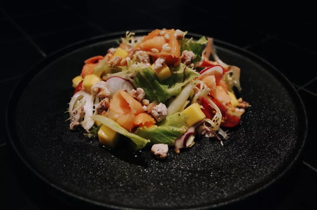 柠檬油醋汁,烟熏三文鱼,芒果,圣女果,混合生菜...确认过口感,是盛夏解暑、解馋的不二之选。看着黑色的盘子,盛满“红黄绿”的食物,口腔开始分泌“渴望”,岂止是有点食欲...