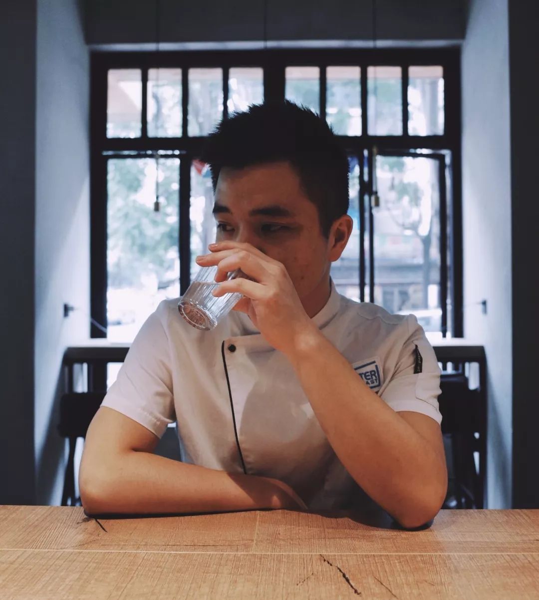 隐盐餐吧的主厨王诗聪,早已等候多时。是的,记住他,一个文能谈天说地,武能掌勺做菜的男人。见到我们后,立刻胸有成竹的吩咐厨房,可以上餐了。
