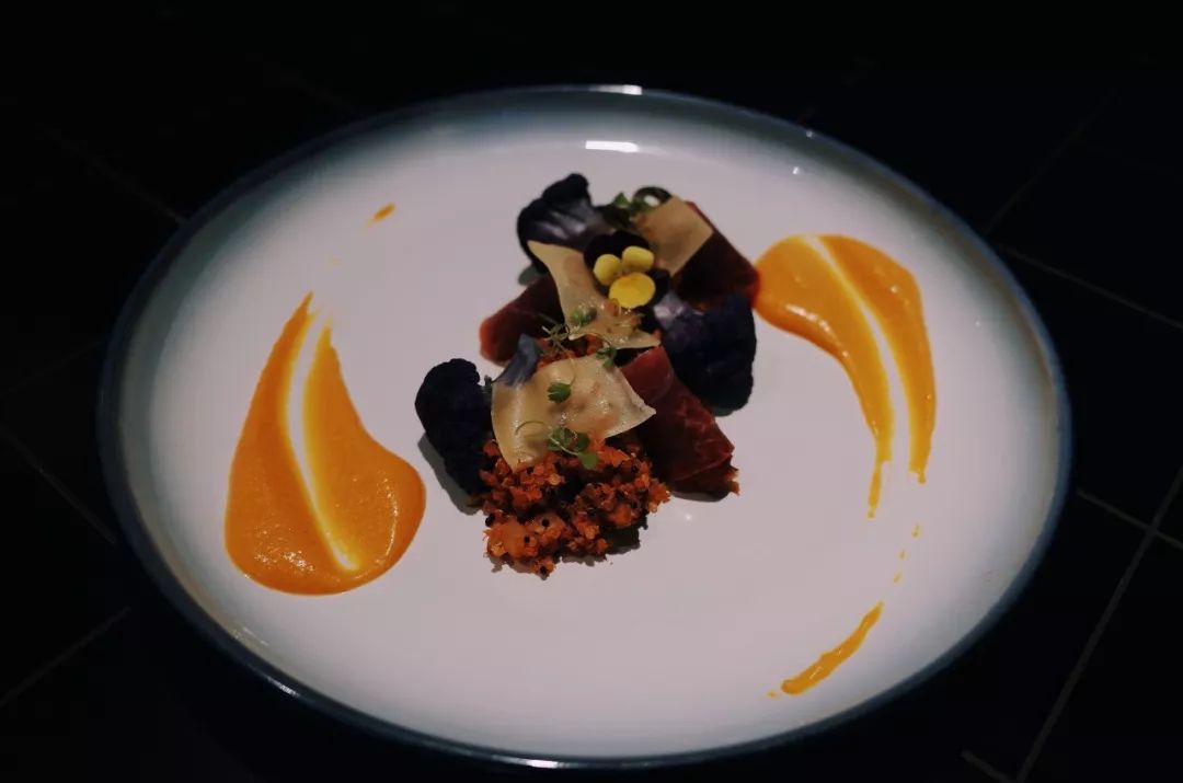 这一份丛林火腿,主要的食材是健康的谷物粒麦,藕丁、有机紫花菜和烟熏火腿。搭配特别版的改良川味酱汁,略带辛辣口感的精致前菜,就呈现出来了。一份前菜而已,级别已经默默飞升。