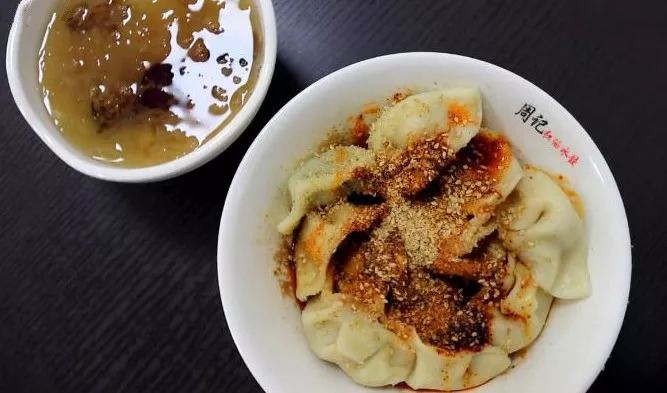 在遵义吃水饺不吃周记就亏了。1989年开业至今已有29个年头,除去极有韧劲的饺子皮和极为鲜嫩的肉馅,周记让人记忆最深刻的还是它的配料,用遵义本地香而不辣的辣椒制成红油,然后再盖上一层炒熟磨好的芝麻面。哪怕不能吃辣的人也能美美地来上一碗。