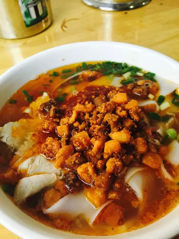 捞沙巷的肖二孃肉片粉,是遵义最老牌美食店之一。开业30多年,肖二嬢坚持买生肉自加工,新鲜卫生,除了基础配料,粉里还可以加脆哨、鸡蛋、肉丁等。丰富的口感得到许多老遵义人的认可。