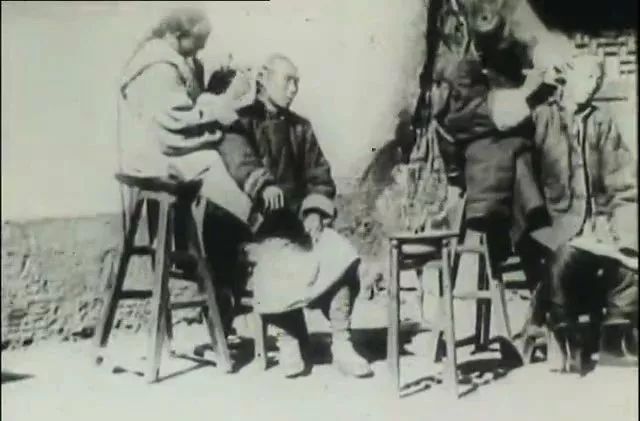 与二十世纪前叶大多数浮光掠影的旅华电影不同,方苏雅的影片记录了很多晚清昆明市井细节,至今仍可感受浓郁的生活趣味。他曾完整地记录了一组晚清男子理发的镜头,为今人研究清人辫发的日常打理留下了珍贵的影像材料。在影片中,两名剃头匠站在街边,各备一高一低两把圆凳,且共用一个木架上的水盆。两位顾客先是坐在矮凳上,上半身伏撑于高凳,由剃头匠为其捏肩捶背,刮头剃须。在下一个镜头中,剃头匠已坐在高凳之上,顺着光线为顾客“采耳”。此后顾客付费,皆大欢喜。这段影像将剃头摊高低凳的多种用途清晰展现,可见设备虽简陋,服务有巧思,“匠人精神”可谓千古不磨。