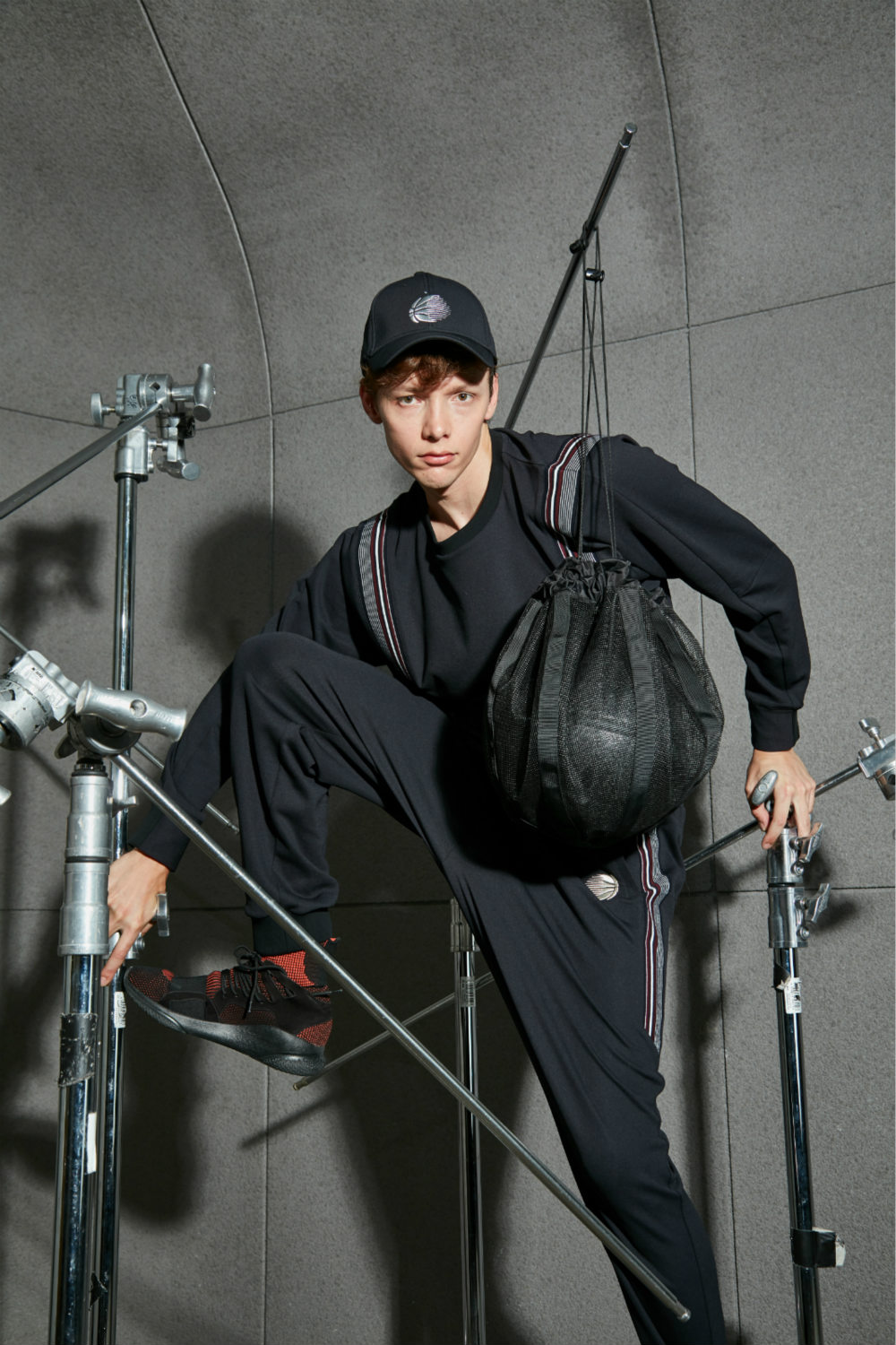 羊毛材质和篮球服的结合打破了消费者对羊毛的惯有印象。Particle Fever结合Woolmark和Particle Fever的logo,和篮球形象的变形对标,廓形感羊毛面料和金属亮银色梭织面料拼接。羊毛成分具有出色的干燥能力,使其成为运动服装的理想纤维,也消除了消费者“不透气”、“太热”等顾虑。