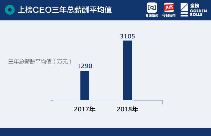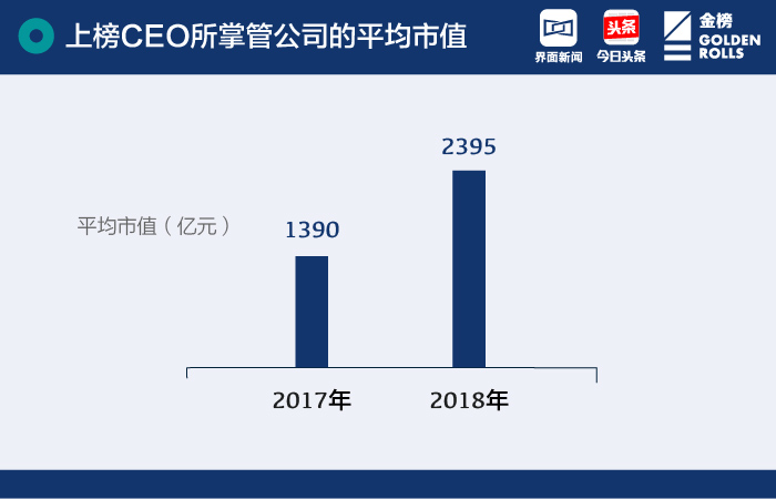 50位最佳CEO所掌管的上市公司中,有26家在内地上市,14家在香港上市,10家在美国上市,平均市值2395亿元。而他们最近三年从上市公司领取的总薪酬的平均值为3105万元。相比去年,今年上榜CEO所掌管公司的市值和其三年薪酬总额分别有72%和141%的增幅。
