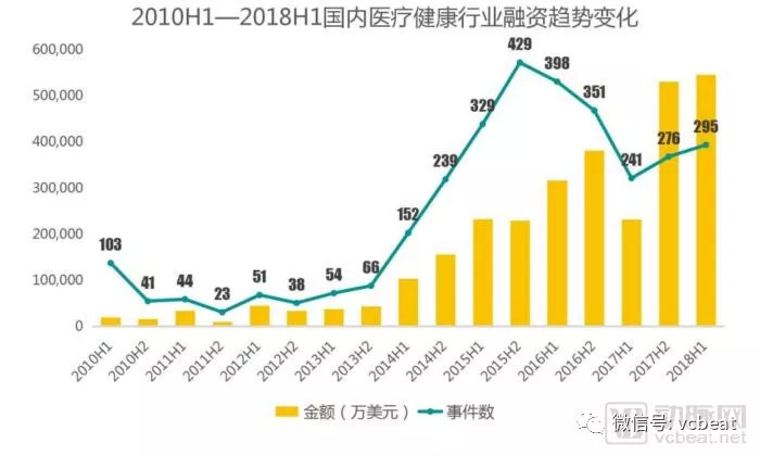根据动脉网蛋壳研究院数据,2018上半年,国内医疗健康行业融资金额54.6亿美元,同比大幅增长达1.35倍,创下国内医疗健康行业上半年融资金额最高纪录,这得益于来自基层医疗、消费医疗、生物技术、医药、科技医疗领域的7笔金额超10亿人民币的超大额融资,其中就有泰康人寿出资20.6236亿元人民币投资拜博医疗51.56%股权。