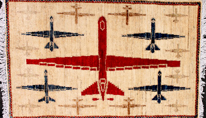 越来越多的地毯上摇晃着F16战斗机、艾布拉姆斯坦克和波拉波拉岛(Bora Bora)的身影,图案上的苏军也被美军取代。苏迪思说,多数织工是生活在巴基斯坦的阿富汗难民,不论以前在阿富汗从事什么工作,他们现在已经成为“一种受到控制的劳动力”。