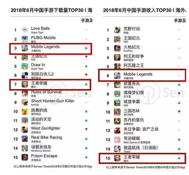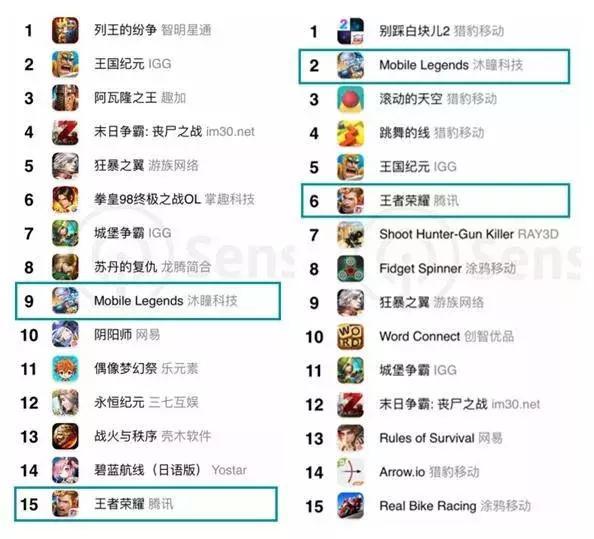 据SensorTower的2017年度中国手游出海榜单和今年6月份的中国手游海外榜单可以看到,《王者荣耀》在下载榜和畅销榜均被《无尽对决》落在身后。也就是说,这一年半的时间里,《王者荣耀》一直在追赶《无尽对决》。